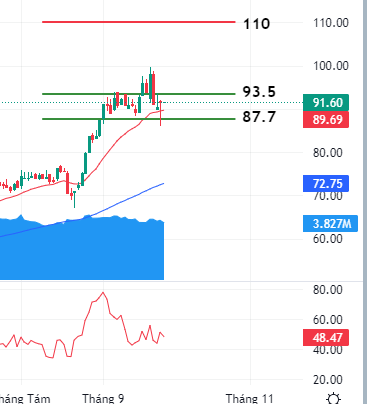 DGC không chịu ảnh hưởng nhiều bởi nhịp điều chỉnh chung của thị trường trong ngắn hạn, hỗ trợ 87.7 vẫn giữ được, và nếu thị trường khởi sắc cổ đông DGC có thể hy vọng vào diễn biến tích cực hơn của cổ phiếu này.