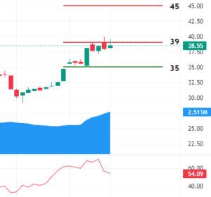 Tuy nhiên nếu dòng tiền tiếp tục mạnh diễn biến cổ phiếu có thể tăng ngay lên vùng 50.