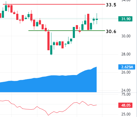 Ở chiều ngược lại, 30.6 sẽ là hỗ trợ tốt cho HDG trong giai đoạn hiện tại.