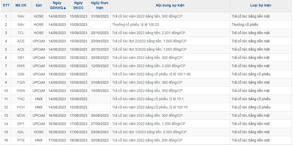 Lịch sự kiện một số doanh nghiệp niêm yết tuần này