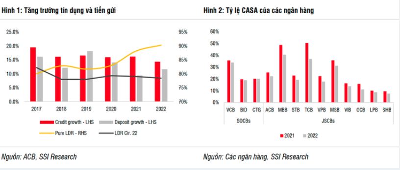 SSI kỳ vọng rằng ACB ít có khả năng tăng lãi suất cho vay khi chưa xem xét khả năng thanh toán của khách hàng. Như vậy, ACB sẽ khó tăng NIM trong năm 2023. Theo đó, chi phí huy động vốn sẽ tăng trong năm 2023, khiến NIM giảm 9 điểm cơ bản xuống 4,21%.