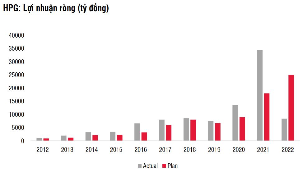“Kế hoạch thận trọng cho năm 2023: Mặc dù công ty đặt kế hoạch doanh thu năm 2023 tăng 6,1% svck đạt 150 nghìn tỷ đồng, nhưng lợi nhuận ròng kế hoạch giảm 5,3% svck xuống mức 8 nghìn tỷ đồng. Chúng tôi xin lưu ý rằng, ngoài năm 2022, lợi nhuận ròng thực tế thường vượt kế hoạch kể từ năm 2012.