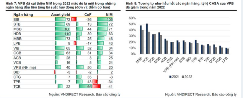 Về NIM, chuyên gia cho rằng NIM hợp nhất trong năm 2023-2024 ở mức 7,4% và 7,3%, giảm từ mức 7,5% trong năm 2022 vì VPBank sẽ khó có thể bù đắp tác động từ việc lãi suất tiền gửi/chi phí vốn tăng cao mặc dù tỷ trọng bán lẻ/SME trong cơ cấu tín dụng của VPB ngày càng được cải thiện.