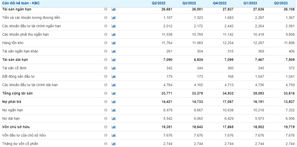 - Dòng tiền vững chắc cùng sức khỏe tài chính lành mạnh. Trong 6T23, KBC đã chi gần 3.900 tỷ đồng mua lại toàn bộ dư nợ trái phiếu, giúp cho tỷ lệ nợ ròng/vốn chủ sở hữu giảm xuống chỉ còn 0,2 lần, tương đối lành mạnh khi so sánh với các công ty cùng ngành có vốn hóa tương tự.
