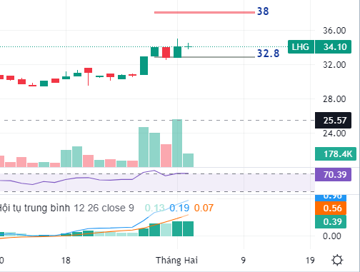 Vừa có nhịp tăng sau 3 tháng tích lũy, nếu xu hướng tăng tiếp tục, giá mục tiêu gần nhất của LHG quanh 38, trong khi hỗ trợ gần nhất quanh 32.8. Nhà đầu tư lướt sóng có thể xem xét mở vị thế mua với LHG.