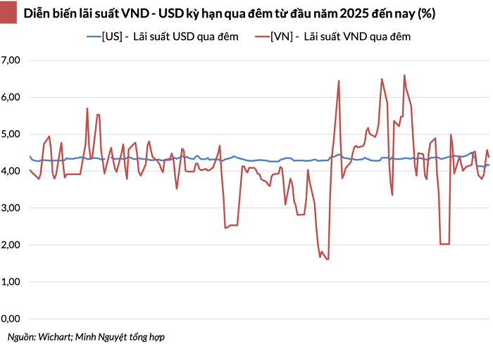 Trước đó, Ngân hàng Nhà nước (NHNN) đã chủ động nới lỏng chính sách trên thị trường liên ngân hàng. Cụ thể, trong hai ngày 25 – 26/8, NHNN triển khai biện pháp bán ngoại tệ kỳ hạn 180 ngày, có hủy ngang, với giá 26.550 VND/USD. Biện pháp này vừa định hướng điểm neo tỷ giá, vừa thăm dò nhu cầu USD mà không cần bán ngoại tệ giao ngay. Kết quả là lãi suất liên ngân hàng giảm sâu về 2,03% (ngày 28/8), mức thấp nhất trong hai tháng.