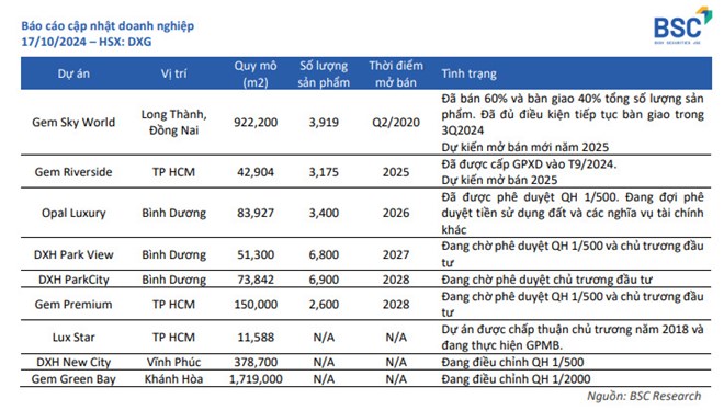 BSC Research dự báo tổng giá trị mở bán mới của Đất Xanh Group năm 2025 sẽ đạt 9.543 tỉ đồng sau 2 năm 2023-2024 không ghi nhận mở bán dự án, chủ yếu đến từ DXH Riverside.