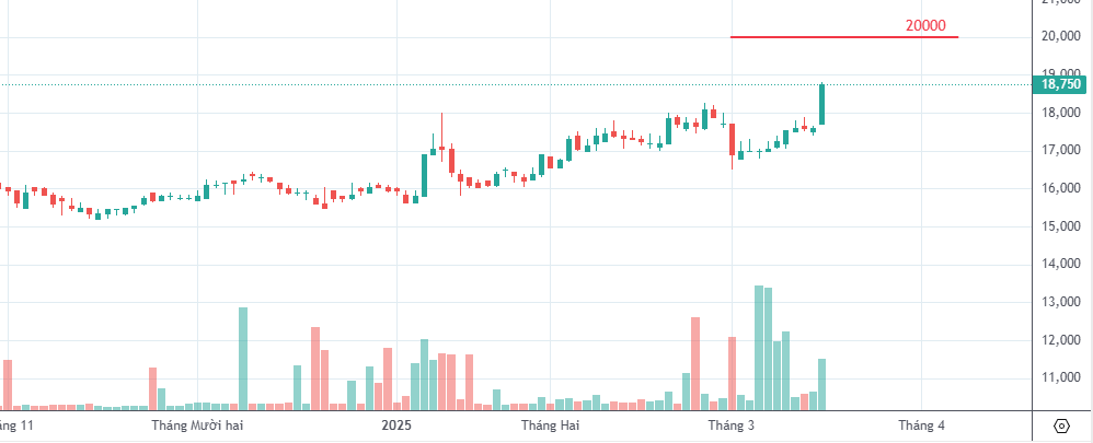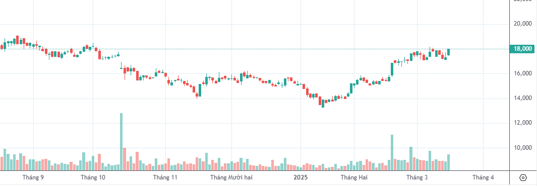 TCH đã trải qua một nhịp tăng mạnh từ vùng đáy quanh 12.000. Hiện tại, cổ phiếu đang dao động quanh vùng kháng cự mạnh 18.000. Đây có thể là vùng chốt lời của nhiều nhà đầu tư ngắn hạn. Nếu giá vượt 18.000 với khối lượng lớn, khả năng cao sẽ bước vào giai đoạn tăng giá tiếp theo.