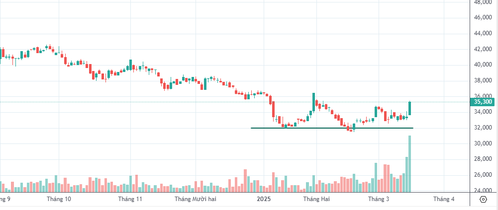 Hỗ trợ: 34.000 – 34.500 (vùng breakout, nếu giữ được sẽ xác nhận xu hướng tăng).
