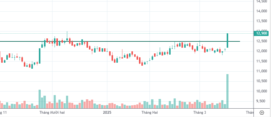 Hỗ trợ: 12.500 (mức giá vừa phá vỡ, có thể đóng vai trò hỗ trợ).