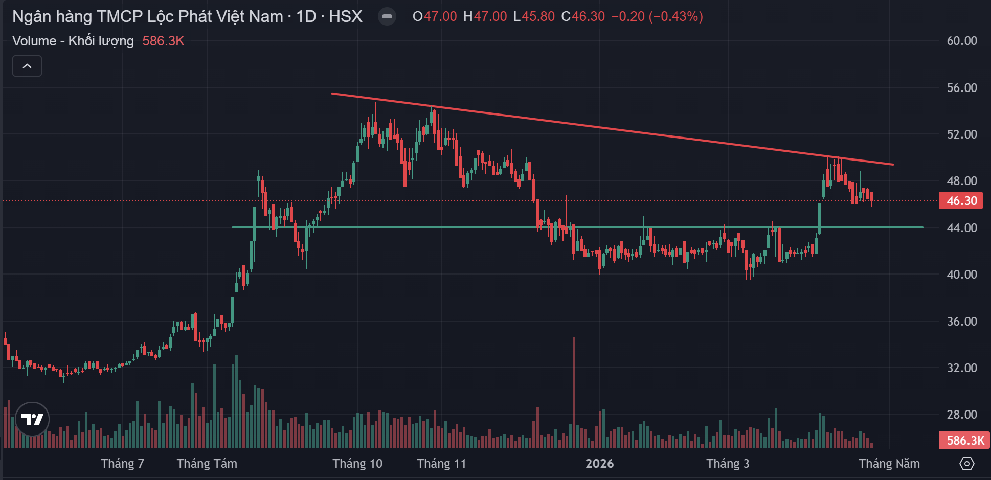 Trong quý I/2026, tổng thu nhập hoạt động  của LPB đạt 5.154 tỷ đồng, tăng 9,9% so với cùng kỳ, với động lực chính đến từ thu nhập lãi thuần đạt 3.878 tỷ đồng, tăng 18,2%. Đáng chú ý, mảng kinh doanh ngoại hối và đầu tư chứng khoán ghi nhận tăng trưởng đột biến, lần lượt gấp 3,5 lần và 15 lần so với quý I/2025, góp phần cải thiện đáng kể cơ cấu thu nhập. Tuy nhiên, các nguồn thu ngoài lãi lại kém tích cực khi lãi thuần từ dịch vụ giảm 19,4% xuống 667 tỷ đồng, còn lãi từ hoạt động khác giảm mạnh 73,2%, làm suy yếu phần nào đà tăng trưởng chung.