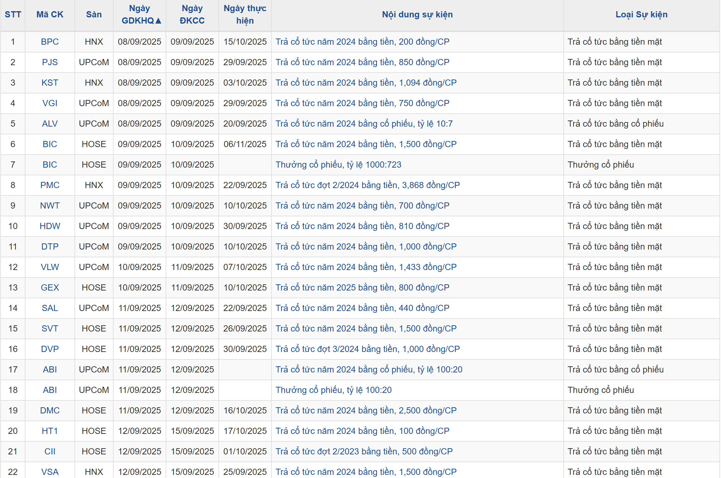 Lịch sự kiện một số doanh nghiệp niêm yết tuần này
