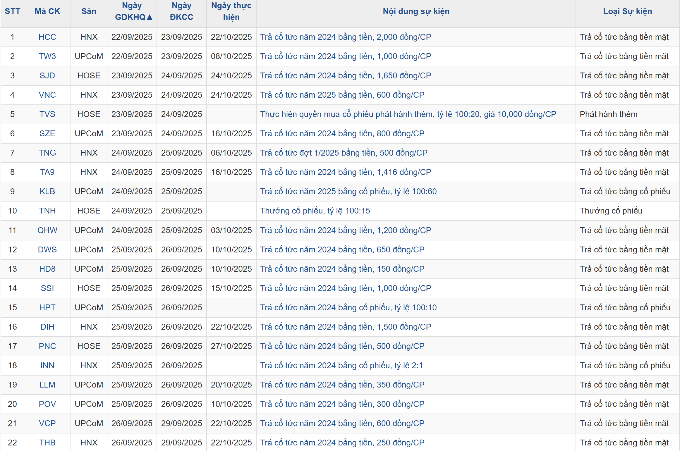 Lịch sự kiện một số doanh nghiệp niêm yết tuần này