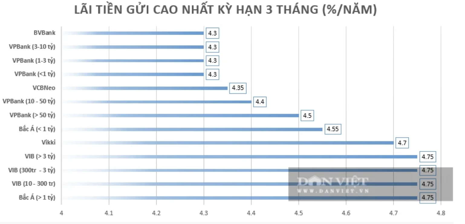 Mặt bằng lãi suất tiết kiệm 3 – 6 tháng đang nhích lên, với nhóm ngân hàng cổ phần (Bắc Á, VIB, Vikki, VPBank…) dẫn đầu cuộc đua hút vốn, trong khi khối quốc doanh giữ mức ổn định hơn. Nguyên nhân chính đến từ tăng trưởng tín dụng cao hơn huy động, áp lực tỷ giá, lãi suất USD duy trì ở mức cao và một phần nợ xấu khiến một số ngân hàng cần vốn mới, dự báo lãi suất huy động có thể tăng thêm 0,2–0,3 điểm %, nhưng nhìn chung vẫn ở vùng thấp.