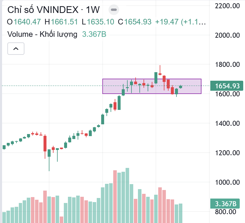 Kịch bản tiêu cực: thủng rõ 1.600 trên khung tuần với khối lượng tăng: Khi đó hộp giá trở thành vùng phân phối đỉnh, xác suất xuất hiện nhịp điều chỉnh sâu hơn là cao (về các vùng hỗ trợ thấp hơn đã hình thành trong uptrend trước).