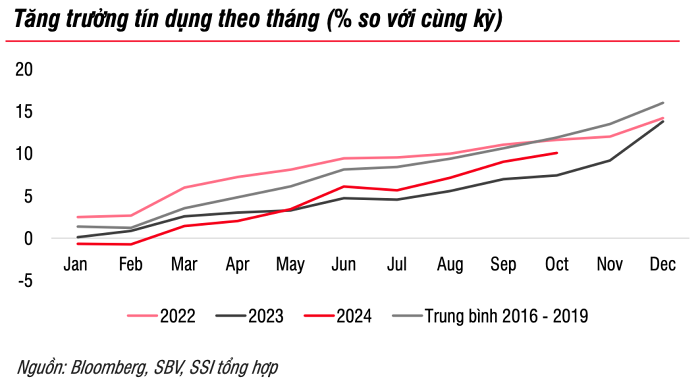 Dù các ngân hàng đã áp dụng nhiều chính sách kích cầu, bao gồm việc hạ lãi suất và nới lỏng điều kiện tín dụng, tốc độ tăng trưởng tín dụng vẫn không đạt kỳ vọng. Nguyên nhân chính là do nhu cầu vay vốn giảm, xuất phát từ tình trạng sản xuất kinh doanh kém hiệu quả và niềm tin thấp của doanh nghiệp vào thị trường. Nhiều doanh nghiệp nhỏ và vừa – chiếm phần lớn trong nền kinh tế – gặp khó khăn khi chi phí đầu vào tăng cao, trong khi sức mua và đơn hàng giảm sút.