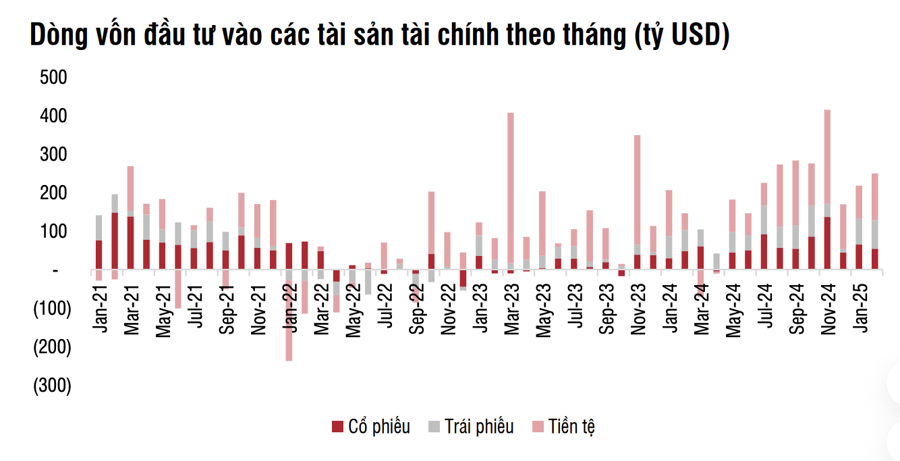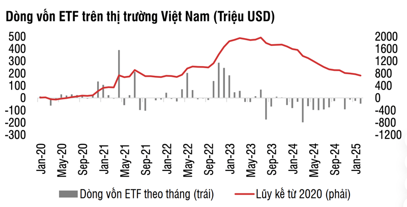Thị trường chứng khoán Việt Nam ghi nhận tín hiệu tích cực khi khối ngoại thu hẹp quy mô rút ròng trong thời gian gần đây. Nếu như tháng 1/2025, dòng vốn ngoại bán ròng mạnh mẽ với giá trị hơn 4.000 tỷ đồng, thì sang tháng 2/2025, con số này đã giảm đáng kể xuống khoảng 1.500 tỷ đồng.