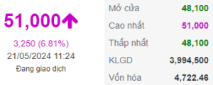 Trạng thái cổ phiếu: Giá tăng mạnh kèm thanh khoản dự kiến đột biến.