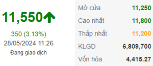Mục tiêu dự kiến : Quanh 14,000đ/cp (nếu vượt cản 12,000/cp).