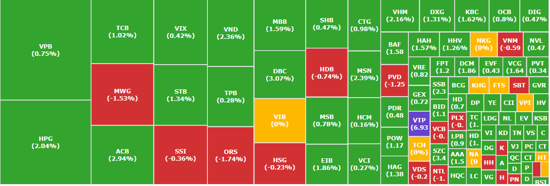 - Tác động tích cực : ACB FPT HPG VHM MSN