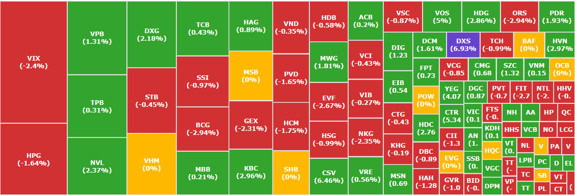 - Tác động tiêu cực : HPG SSI VIX HDB GEX