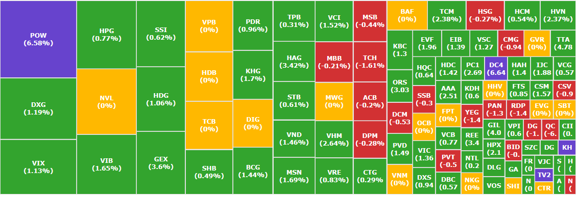 - Tác động tiêu cực : VHM, HPG, SAB, EIB, và BVH.