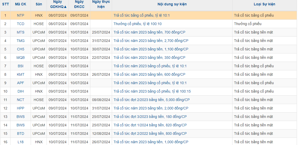 Lịch sự kiện một số doanh nghiệp niêm yết tuần này