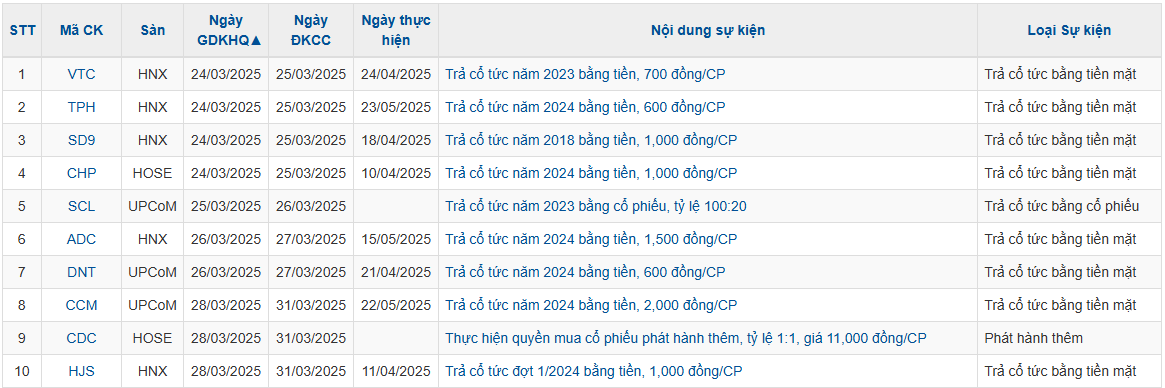 Lịch sự kiện một số doanh nghiệp niêm yết tuần này